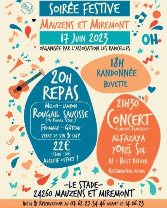 Soirée festive organisée, par l'association des Radicelles, le 17 juin 2023 à Mauzens et Miremont